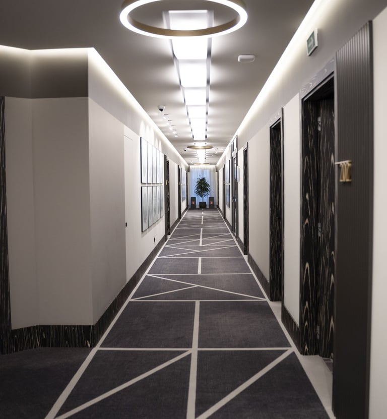 Cada hotel desea diferenciarse de su competencia y transmitir una propuesta de valor única a sus huéspedes. En este proceso, el piso se convierte en un elemento de comunicación visual tan importante como los muebles, la iluminación o la decoración. Las alfombras de alto tráfico permiten reflejar el estilo y la identidad del hotel, ya sea a través de diseños discretos y elegantes que transmiten sobriedad o mediante estampados personalizados que refuercen un concepto más creativo y llamativo.