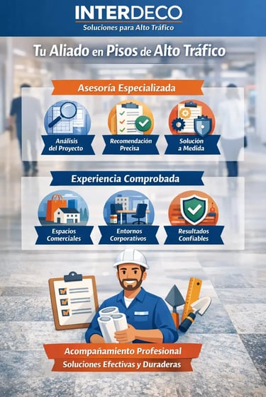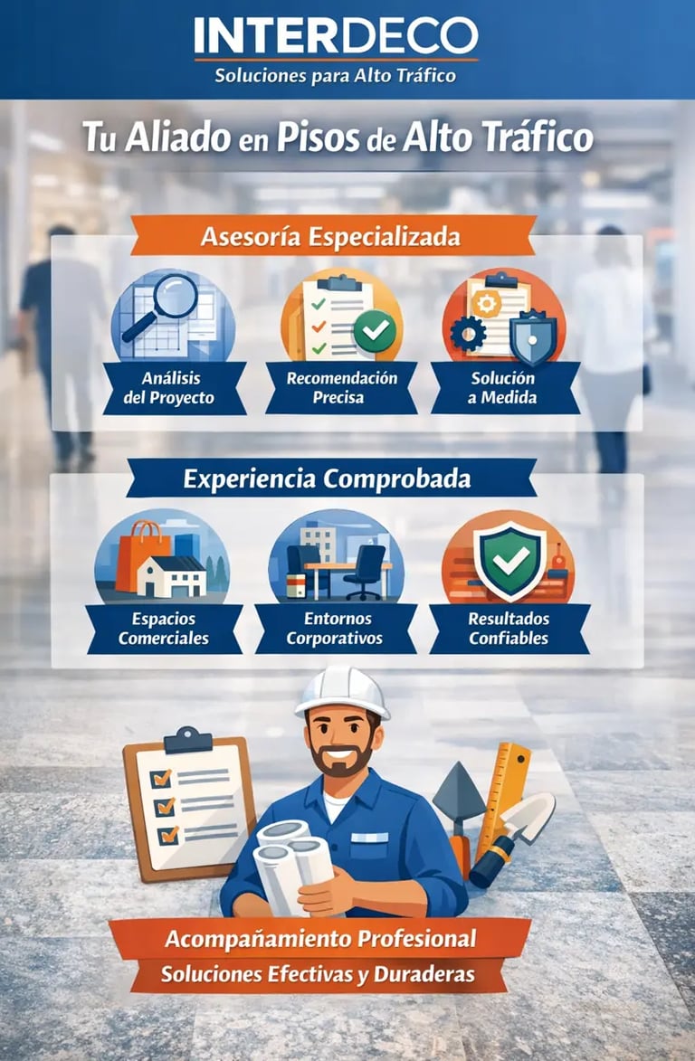 En proyectos de alto tráfico, el resultado final no depende únicamente del material elegido, sino de cómo se integra cada etapa del proceso. Desde la selección del producto hasta la instalación, cada decisión influye en el desempeño, la durabilidad y la apariencia del piso en el tiempo. Interdeco ofrece un enfoque integral que permite gestionar el proyecto de manera eficiente, asegurando que cada componente esté alineado con las necesidades reales del espacio. Este acompañamiento facilita la correcta implementación del sistema, reduciendo errores y optimizando los resultados desde el inicio.