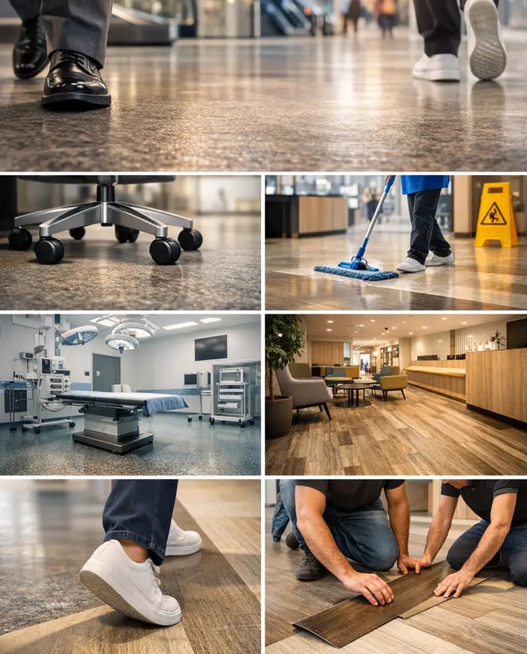 El LVT, en cambio, responde muy bien en espacios donde además del tráfico se busca un componente estético más fuerte. Su estructura permite mantener una buena apariencia en el tiempo, incluso en zonas de uso frecuente, siempre que se seleccione la especificación adecuada.