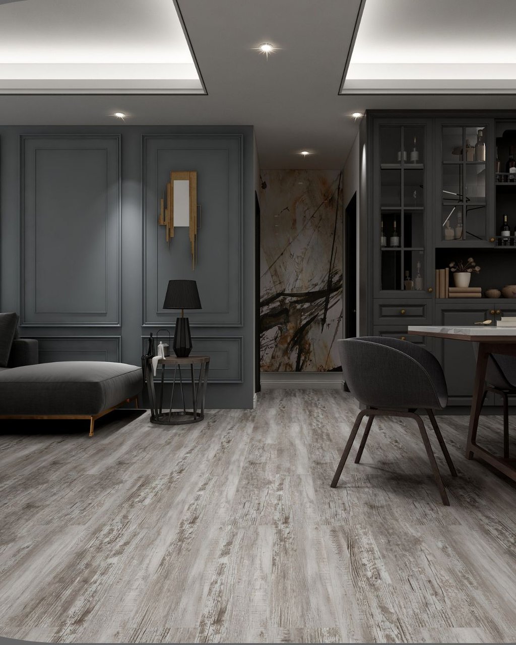 Se instalan con sistemas de encaje o clic, lo que simplifica el proceso y permite una superficie continua y firme. Son muy utilizados en salas de reuniones, oficinas directivas, hoteles y áreas de atención al cliente, donde la imagen corporativa debe reflejar elegancia y profesionalismo. Además, combinan el estilo premium con la practicidad del vinilo, ofreciendo fácil limpieza, mantenimiento sencillo y larga vida útil.