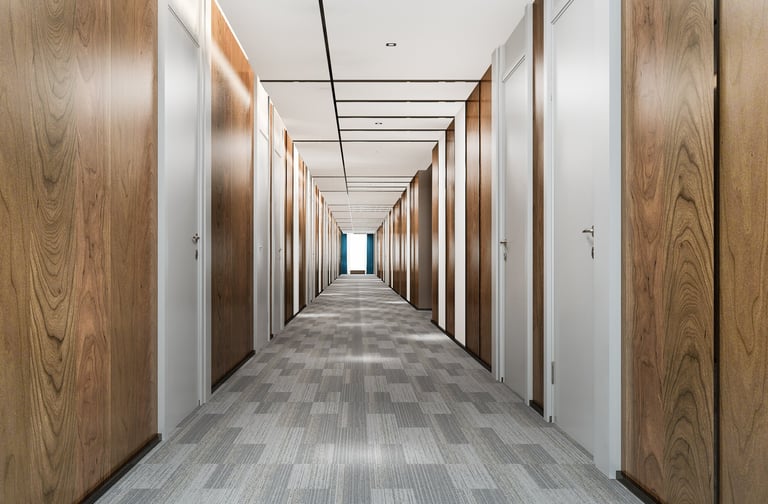 En colegios y universidades, el constante tránsito de estudiantes, docentes y personal administrativo pone a prueba cualquier tipo de superficie. Los pisos vinílicos institucionales están diseñados para resistir este nivel de uso sin deteriorarse con facilidad, garantizando una vida útil prolongada incluso en zonas de alta circulación como corredores y pasillos principales.