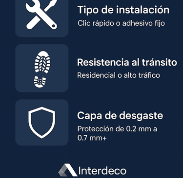 Primero, considera el tipo de instalación que mejor se adapta a tu entorno. Los sistemas de clic son ideales para remodelaciones rápidas y cambios de diseño frecuentes, mientras que los pisos vinílicos que requieren adhesivo ofrecen una fijación más estable para áreas con tránsito constante. Evaluar la instalación correcta también ayuda a reducir costos de mantenimiento y prolonga la vida útil del piso.