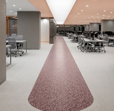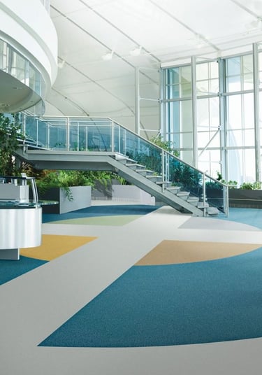 Además, los patrones geométricos y combinaciones de colores se utilizan para diferenciar zonas, guiar flujos de tránsito o destacar áreas específicas dentro de un espacio de alto tráfico. Los pisos vinílicos ofrecen una amplia gama de acabados y diseños personalizables, lo que facilita la creación de ambientes únicos y coherentes con la marca, sin comprometer la resistencia y la funcionalidad necesarias en entornos corporativos.