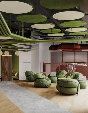 En oficinas modernas, los pisos vinílicos son ampliamente utilizados en áreas de coworking, salas de reuniones, recepciones y pasillos principales. Su resistencia al desgaste asegura que soporten el flujo constante de colaboradores y visitantes sin perder su apariencia original. Además, su capacidad para absorber el sonido los convierte en una opción estratégica para oficinas abiertas o espacios donde la concentración es clave, como call centers o áreas administrativas.
